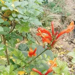 硬骨凌霄 Spach)是紫葳科硬骨凌霄属的多年生常绿木质藤本植物。茎多分枝;枝带绿褐色;叶对生,…