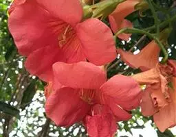 圆锥花序生于小枝顶端,花序轴下垂,长50-100厘米;花稀疏,6-10朵。花萼钟状,革质,长4.5-5厘米,直径约2厘米,3-5裂齿不等大,顶端渐尖。花冠桔黄色或褐红色,裂片卵圆形,上唇2片较小,下唇3片较大,开展,花冠筒外面具凸起纵肋。雄蕊4,2强,外露,花药个字形着生,药室2,纵裂。花盘环状。柱头2裂,子房1室,胚珠多数。果下垂,圆柱形,长38厘米左右,直径12-15厘米,坚硬,肥硕,不开裂,果柄长8厘米。种子多数,无翅,镶于木质的果肉内。