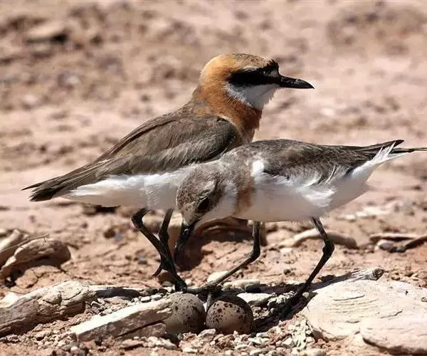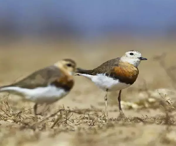 环颈鸻(学名:Charadrius alexandrinus):全长约16厘米。属中小型涉禽。羽毛的颜色为灰褐色,常随季节和年龄而变化。跗蹠修长,胫下部亦裸出。中趾最长,趾间具蹼或不具蹼,后趾形小或退化。翅形尖长,第1枚初级飞羽退化,形狭窄,甚短小;第2枚初级飞羽较第3枚长或者等长。三级飞羽特长。尾形短圆,尾羽12枚。