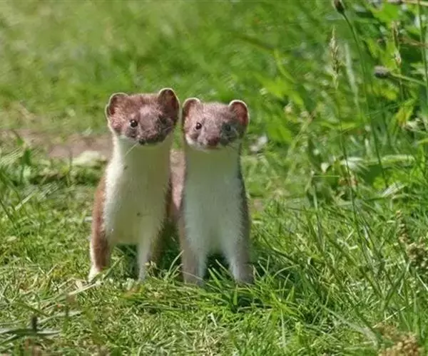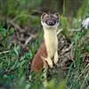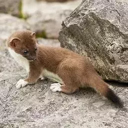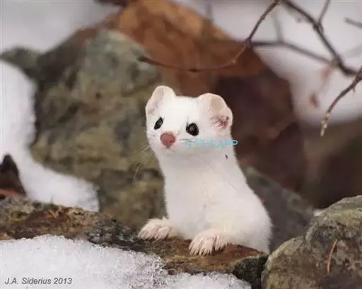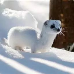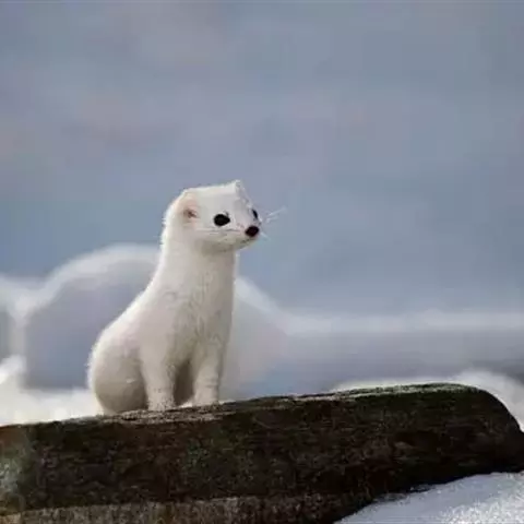 白鼬(学名:Mustela erminea):共有37个亚种。体重25-116克,体长170-330毫米。体形似黄鼬,身体细长,四肢短小,毛色随季节不同,夏毛身体背面和腹面颜色不同,背面自吻端向后经颊部、颈侧、体侧至四肢腕部及尾的背面为灰棕色,足背为灰白色;腹面由下唇、颌部、喉部至腹部及四肢内侧为白色;足背为灰白色;尾下基部2/3同于腹色,近末端1/3段全黑色。冬毛全身均为纯白色,只有尾端为黑色。寿命5-8岁年。