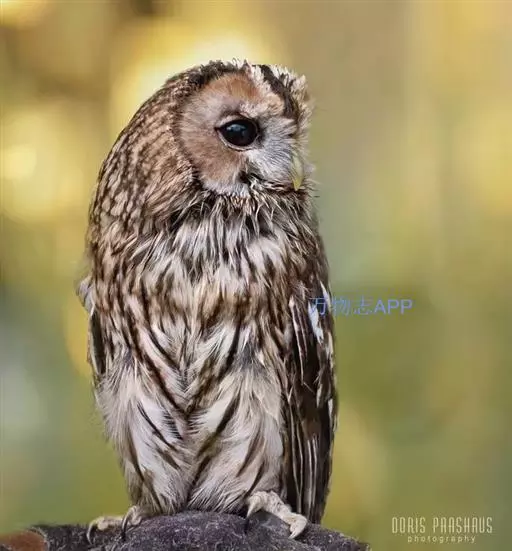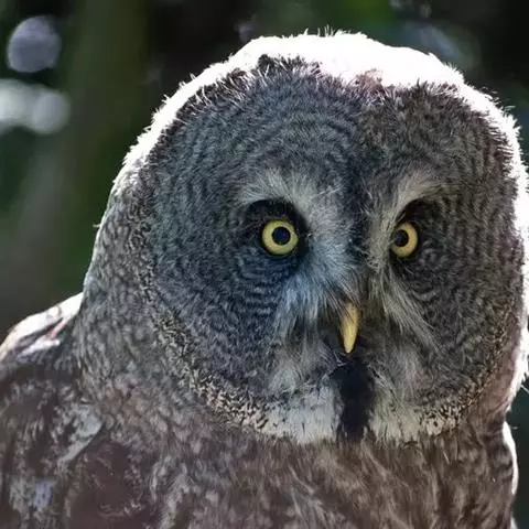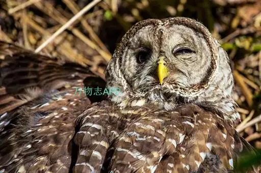 灰林鸮的虹膜暗褐色,嘴角褐色,先端腊黄色,爪角黄褐色(华南亚种)。