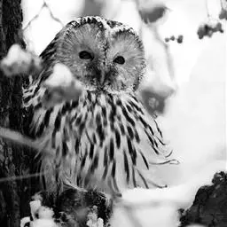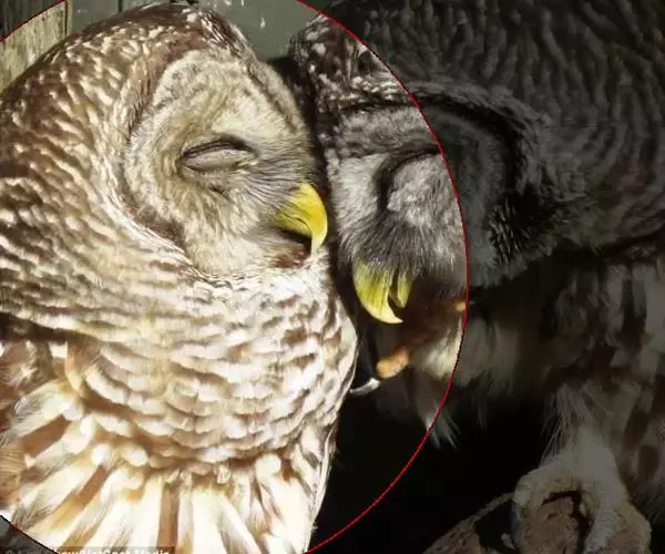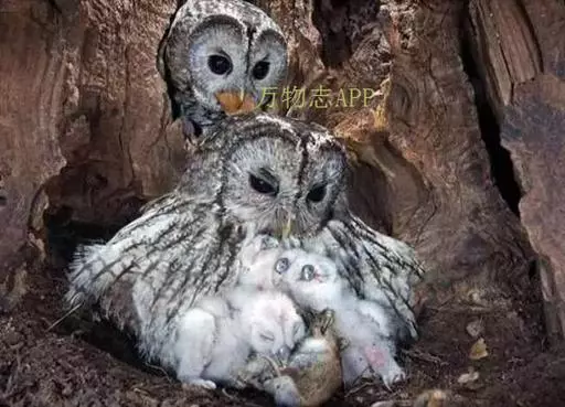 雏鸟 灰林鸮的繁殖期在1月至翌年4月。主要营巢于树洞中,有时也在岩石下面的地上营巢或利用鸦类巢。每窝产卵1-8枚,通常2-4枚。卵的大小为46-49mm×39-42mm。雌鸟孵卵,孵化期28-30天。雏鸟晚成性,经过亲鸟29-37天的喂养才能飞翔。雏鸟会于长羽毛前离开鸟巢。雏鸟的生存率不明,但成年每年的生存率为76.8%。灰林鸮一般寿命约为5年,但亦曾发现有分别超过18岁及27岁的野生及饲养灰林鸮。