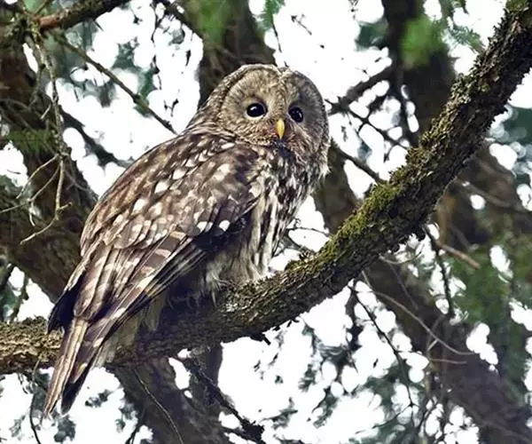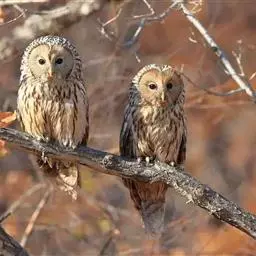 灰林鸮(学名:Strix aluco),是鸱鸮科、林鸮属的鸟类。灰林鸮为中型鸮类,体长37-40cm,头圆,无耳簇羽,面盘明显。橙棕色或黑褐色,上体暗灰色,呈棕色与褐色斑杂状,外侧翅上覆羽外翈棕白色,在翅上形成显著的棕白色翅斑。下体白色或皮黄白色。胸具细密条纹和虫蠹状斑。