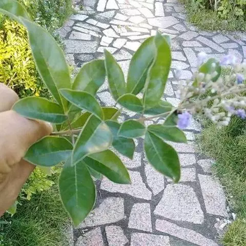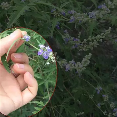 小叶荆(Vitexn egundoL.var.microphyllaHand.-Mazz..),灌木。掌状复叶,小叶3-7,通常5;小叶片椭圆状披针形,全缘,顶端渐尖,基部楔形,表面绿色,背面密生灰白色绒毛,中间小叶片长1.5-4厘米,宽0.5-1厘米。花序顶生,长5-11厘米。果实有毛。花果期7-11月。