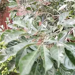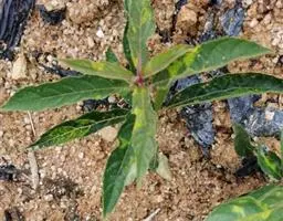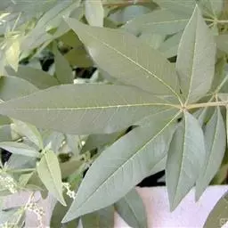 掌状复叶,小叶5,少有3;小叶片长圆状披针形至披针形,顶端渐尖,基部楔形,全缘或每边有少数粗锯齿,表面绿色,背面密生灰白色绒毛;中间小叶长4-13厘米,宽1-4厘米,两侧小叶依次递小,若具5小叶时,中间3片小叶有柄,最外侧的2片小叶无柄或近于无柄。
