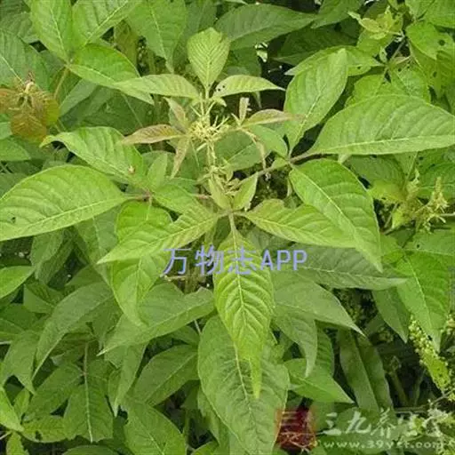 拟黄荆(Vitex negundoL.var.thyrsoidesPei),掌状复叶,小叶3-5;小叶片披针形或狭椭圆形,全缘,表面疏生柔毛或在脉上有毛,背面密生灰白色绒毛。圆锥花序由假聚伞花序组成,最末侧枝上的花常呈总状排列。花果期8-10月。