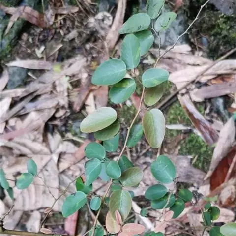 藤状或直立灌木;幼枝黄绿色,光滑无毛。叶纸质,上部叶较小,卵形或卵状椭圆形至与卵状披针形,长4-9厘米,宽2-5厘米,顶端锐尖,下部叶较大,椭圆形至矩圆形,长达11匣米,宽达6.5厘米,顶端钝或圆形,稀短渐尖,基部圆形,稀心形,上面绿色,无毛,下面干时栗色,无毛,或仅沿脉基部被疏短柔毛,侧脉每边9-12条,两面稍凸起;叶柄长1-2厘米,稀5.2厘米,无毛;托叶狭披针形,宿存。