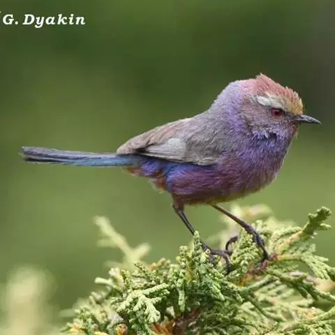 凤头雀莺:小型鸟类。体长9-10厘米,雄鸟呈毛茸茸的紫色和绛紫色,顶冠淡紫灰色,额及凤头白色,尾全蓝。…