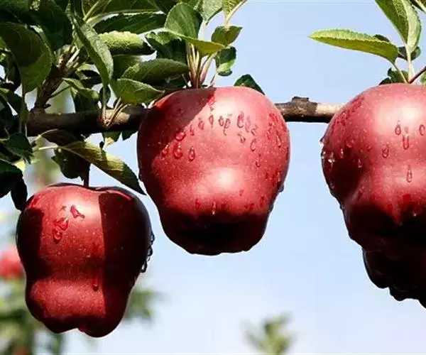 果色浓红。蛇果原产于美国,果型端正,高桩,萼部五棱明显,平均 单果重200g,大者可达500g以上,而且果肉质脆,汁多,味甜,有芳香。