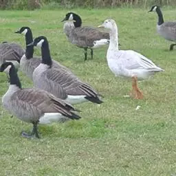黑雁是雁形目鸭科黑雁属鸟类,又称黑鹅。头、颈、胸、嘴及脚黑褐色;虹膜褐色;背及两翼灰褐色;尾下覆羽白色;胸侧及胁部多近白色纹;颈部两侧各具一个特征性白色横纹,在颈前后断开,未能联成颈环。幼鸟颈部无白斑,而翅上多白色横纹。黑雁繁殖于北美洲、西伯利亚极地的苔原冻土带,越冬于南方沿海的草地及河口。在中国安徽也能见其身影。主要栖息在海湾、海港及河口等地,在冬季里大多出现在有耐碱植物生长的湖泊和水库周围,也出现在周围地势低洼的咸水湖和沿海地区,偶尔还出现在农田地里。性活跃,喜集群,常成群活动和栖息。主要以植物性食物为食。繁殖期在6-8月,雌鸟孵卵,雄鸟通常在距巢100米以内范围内守候警诫。雌鸟孵卵时常将头和颈朝地面平伸出去以降低高度。孵化期为22-28天。黑雁被列入中国林业局2000年8月1日发布的《国家保护的有益的或者有重要经济、科学研究价值的陆生野生动物名