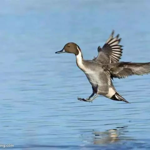 环颈鸭(图3) 双翼,下体侧面浅灰色,胸部鲑鱼色有黑色斑点。有一道黑色宽带纹由头顶延至颈背。雌鸭有橄榄褐色斑点双翼,头部和脸颊有白色条纹,胸部和腹部苍白有斑纹。雌雄都有黑色的尾巴,臀部白色,飞翼上有独特的白色斑,鸭喙灰色,腿和脚粉红色,虹膜棕色。