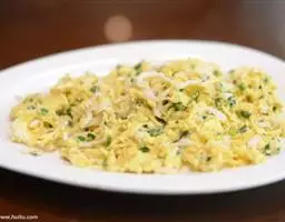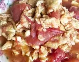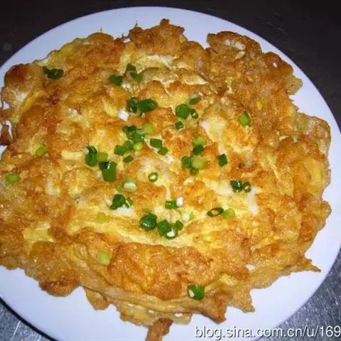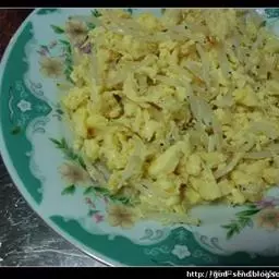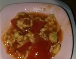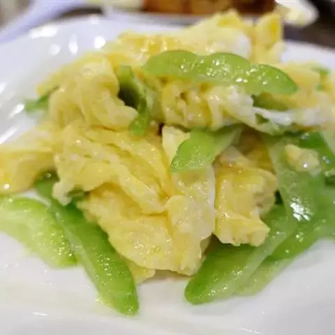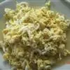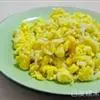 5.下入打散的鸡蛋,用筷子搅散盛出。