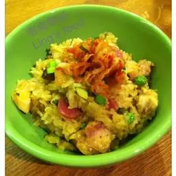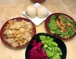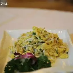 9.加入炒好的鸡蛋和黄瓜片,翻炒均匀,加入鸡精和盐调味即可。