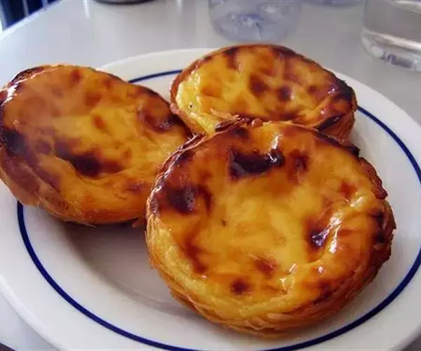 葡式蛋挞 葡萄牙式奶油挞,又称葡式蛋塔,港澳地区称葡挞,是一种小型的奶油酥皮馅饼,其焦黑表面(是糖过度受热后的焦糖)是其特征。相传最晚在18世纪葡萄牙里斯本热洛尼莫修道院的修女发明的。1837年开始在世俗饼店有售,当时因为店子位处里斯本的贝林区而称为贝林挞。