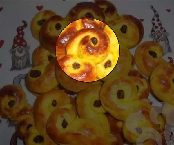 ③将冷却了的小麦草混合物倒入已备好的圆模面团中,以200℃烘30分钟即成。