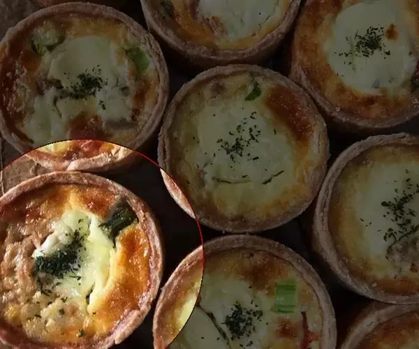 3.移入烤箱以摄氏180度火力烤15分钟左右,待蛋汁稍凝固时(约12分钟),即熄火,用烤盘焖盖,再烘3分钟即可取出。