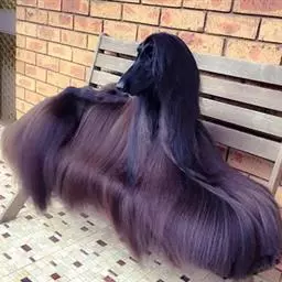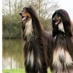 阿富汗猎犬全身披丝绢状的长毛,毛色鲜艳,呈多种颜色,背中线附近毛短,…