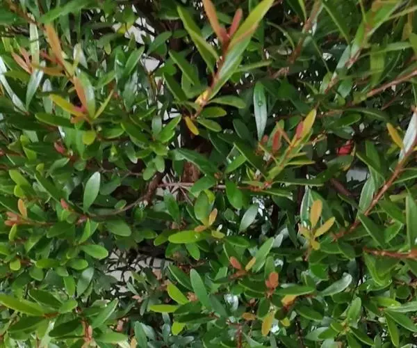赤楠(学名:Syzygium buxifolium Hook. et Arn. ),又名“鱼鳞木‘’“赤兰“山乌珠”等,是桃金娘科、蒲桃属灌木或小乔木;嫩枝有棱,干后黑褐色。叶对生,叶片革质,阔椭圆形至椭圆形,有时阔倒卵形;聚伞花序顶生,有花数朵;果实球形,花期6-8月。