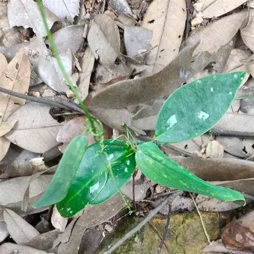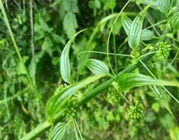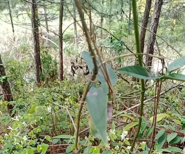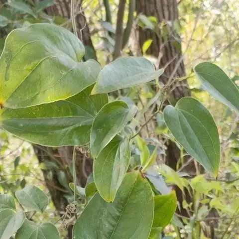 菝葜,菝葜科菝葜属 多年生藤本落叶攀附植物,茎干较粗,嫩白色,呈圆柱形,表面带有小刺;叶子较大,…