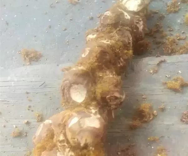 4、《本草拾遗》:“草禹余粮,根如盏连缀,半在土上,皮如茯苓,肉赤味涩,人取以当谷,不饥……调中止泄。”