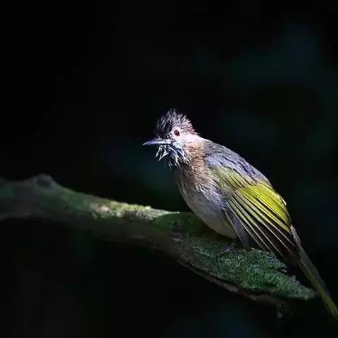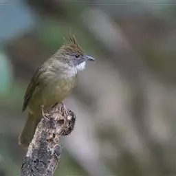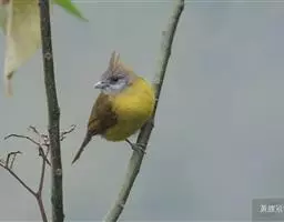 黄腹冠鹎:体长19-24厘米,是一种体型略大的褐色鹎。头顶橄榄褐色具黑褐色羽冠。白色的喉膨起,…