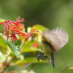 纹背捕蛛鸟:为太阳鸟科捕蛛鸟属的鸟类。是太阳鸟科中体型较大的一种,体重25-45克,…