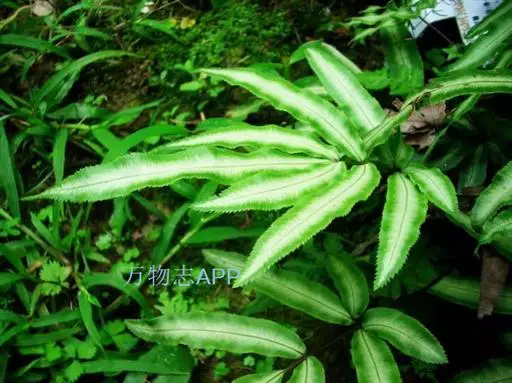 与剑叶凤尾蕨(原变种)区别在于:该种羽片中央沿主脉两侧各有1条纵行的灰白色带。