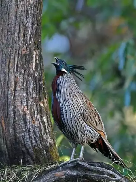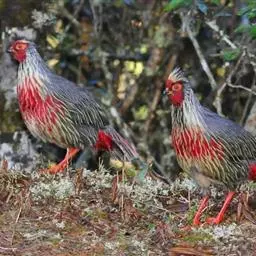 血雉雉科血雉属鸟类,别名血鸡、松花鸡,血雉的雄鸟大覆羽、尾下覆羽、尾上覆羽、脚、头侧、腊膜为红色,…