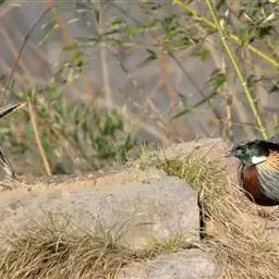 雉鸡:鸟纲、雉科、雉属的一种走禽,共有30个亚种。体形较家鸡略小,但尾巴却长得多。雄鸟和雌鸟羽色不同,…