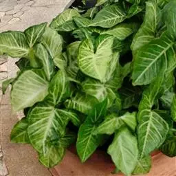 合果芋是天南星科,合果芋属多年生常绿草本植物,合果芋的茎节具气生根,攀附他物生长。叶片呈两型性,…