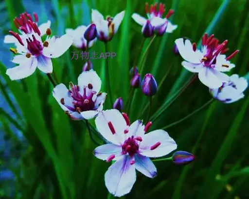 花蔺属是世界单种属,仅含一种,在外形上容易被当作百合科的植物,但雄蕊9枚(百合科植物雄蕊6枚),容易区分。
