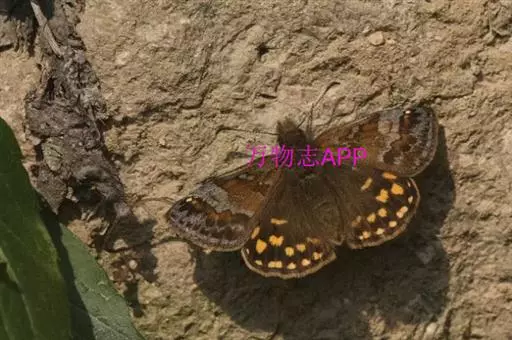 翅暗褐色,雄蝶有紫色光泽。前翅外半部有深灰色波状横带,其前缘有模糊白色点列;后翅面有2行黄色斑列(其内列斑纹较大,排列不规则),中室端斑1个。雌蝶前翅面波状带色淡,宽而明显(尤其中带特别宽而色淡)。