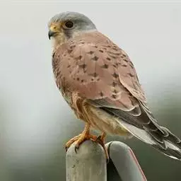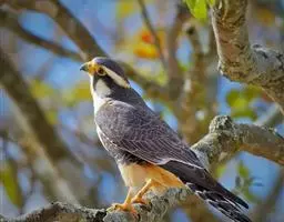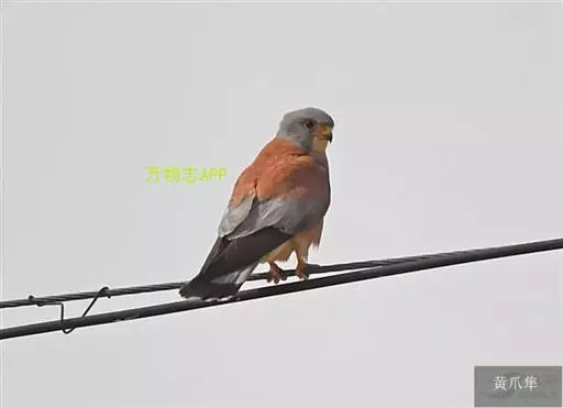 黄爪隼:是隼科、隼属鸟类。体长约305毫米,雄鸟头、颈和翅上覆羽铅灰色;嘴蓝灰色;跗跖和趾淡黄色,…