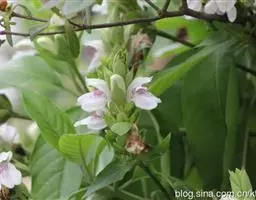 叶:对生,全缘, 两面有柔毛,背面中肋叶脉明显,先端尖或钝,基部蟹形,叶柄短小。