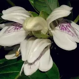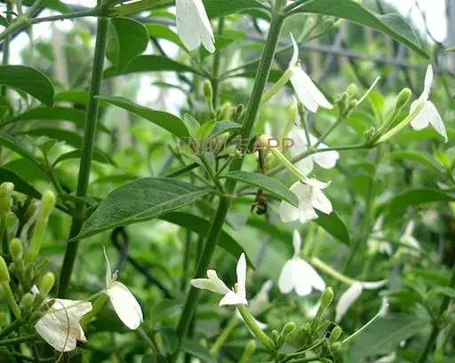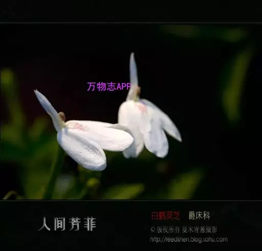 聚繖花序,著生于枝梢或叶腋,苞片细小,花萼裂片为五,条状披针形,两面生腺毛,唇形花冠白色,上唇披针状,下唇短三裂,花冠形状,在一片绿意背景中犹如一只只展翅飞翔的白鹤;可育雄蕊2枚,花药两室。