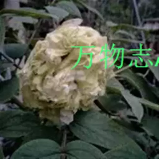 花朵皇冠型或绣球型。花蕾圆形,顶端常开裂,花黄绿色(144-D);花径12×6厘米。外瓣2-3轮,质厚而硬,基部具紫色斑,内瓣密集,皱褶;雌蕊瓣化或退化。花梗细软,花朵下垂。晚花品种。株型较矮,开展。枝较细,一年生枝短,节间较短;鳞芽狭尖形,形似鹰嘴,浅褐绿色,鳞片顶尖红色。生长势中,成花率高,萌蘖枝多。
