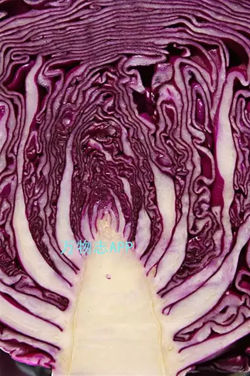 叶片紫红、叶面有蜡粉、叶球近圆形。营养丰富,尤其含有丰富的维生素C、维生素U和较多的维生素E和B族。