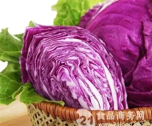 紫甘蓝营养丰富,据测定,每100克鲜菜含胡萝卜素0.11毫克、维生素B10.04毫克、维生素B20.04毫克、维生素C39毫克、尼克酸0.3毫克、糖类4%、蛋白质1.3%、脂肪0.3%、粗纤维0.9%、钙100毫克、磷56毫克、铁1.9毫克。