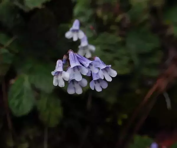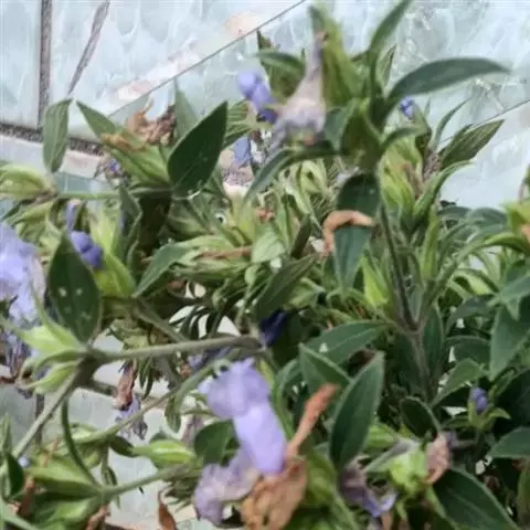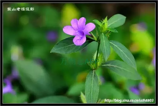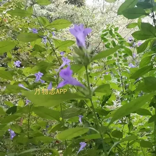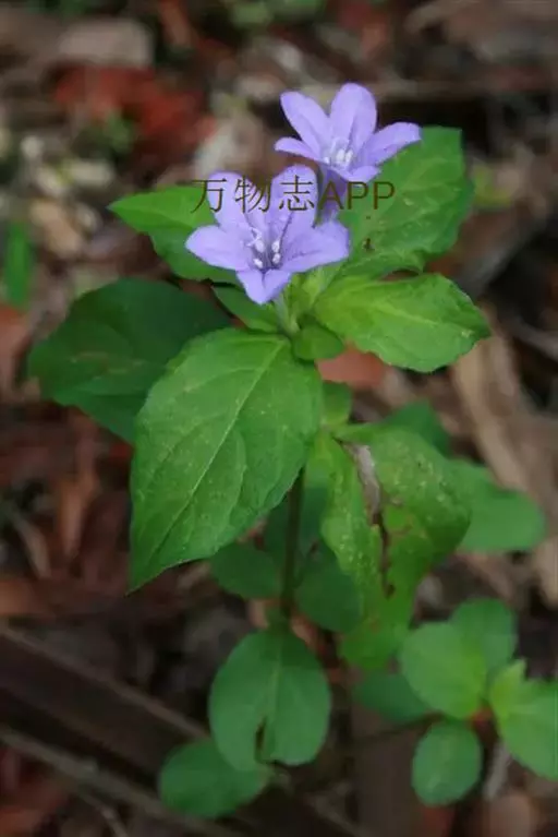 有时花退化而只有2枚不孕的小苞片;外2萼片卵形至披针形,长1.2-2厘米,前萼片较后萼片稍短,先端急尖具刺尖,基部圆,边缘有小点,齿端具刺尖,脉纹甚显著,内2萼片线形或披针形,长6-7毫米,1脉,有缘毛,花冠蓝紫色或白色,2唇形,通常长3.5-5厘米,有时可长达7.5毫米,花冠管圆筒状,喉部渐大,冠檐5裂,裂片近相等,长圆形;能育雄蕊4,2长2短,着生于喉基部,长雄蕊花药2室并生,短雄蕊花药顶端相连,下面叉开,不育雄蕊1,所有花丝均被疏柔毛,向下部较密;子房扁,长椭圆形,无毛,花盘杯状,包被子房下部,花柱线状无毛,柱头略膨大。蒴果长圆形,长1.2-1.8厘米,两端急尖,无毛。花期11-12月。