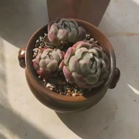 圣诞冬云整体来说养护不难,夏季不休眠,但生长缓慢,可少量给水,适当遮阴,如叶片干瘪柔软,就是缺水严重的征兆了,如果种植环境过于闷湿,圣诞冬云的下部叶片有些会黄化化水,出现这种情况,应注意通风控水。 夏季的圣诞冬云叶片颜色会显得较绿,仅叶尖和叶缘有红边。非夏季的圣诞冬云生长速度较快,浇水可干透浇透,尽量给予充足光照,圣诞冬云较抗寒,据说可适应零下3℃左右的温度,配合秋冬季节的温差,圣诞冬云叶片颜色会变得较浅,有点黄绿透明感,叶缘的红晕会渲染开,颇为娇艳。