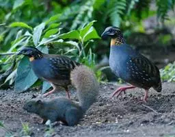 眼斑冢雉:体长60-65厘米,羽毛呈浅褐色,有许多白斑。它们的脖子很长,且光秃无毛。雄鸟的脸呈火红…