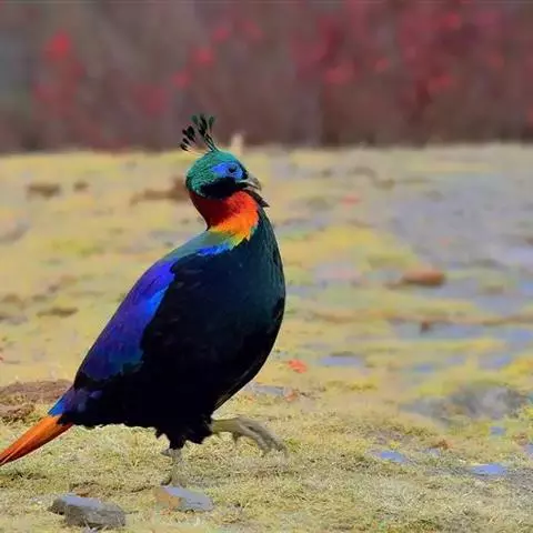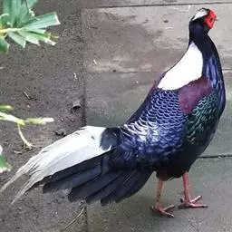 黑长尾雉大型鸡类,体长53~88厘米。雄较雌大。雄鸟通体紫蓝色,脸鲜红色,翅上有一条显著的白色翅斑…