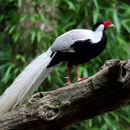 白颈长尾雉:大型鸡类,体长81厘米,体型大小和雉鸡相似。雄鸟头灰褐色,颈白色,脸鲜红色,其上后缘有…