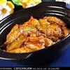 ③趁锅内余油,下蒜茸、芹菜粒、椒粒、堡仔酱爆香,接着下鸡粒炒匀,加入绍酒、上汤及茄瓜条和以上味料和炸香咸鱼茸,略焖片刻,调入少许生粉,加入包尾油。转盛入瓦煲里,加热至滚,下香油、葱花, 加盖上桌即可。
