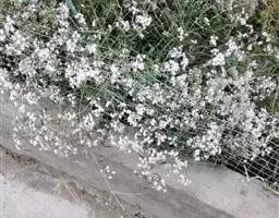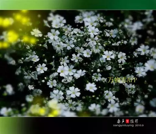 别名锥花丝石竹、满天星。石竹科丝石竹属一年生草本植物。茎纤细,多分枝而开展,节处膨大。单叶对生,狭披针形至线状披针形,全缘。小花繁多,组成疏散的圆锥花序,花白色,花瓣5枚,长椭圆形;萼短钟状,5裂;花期5~6月。蒴果球形。