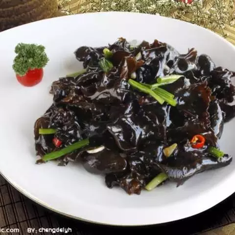 香拌木耳,以泡发木耳、蒜瓣为主料的菜品。
