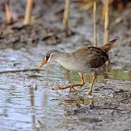 白眉田鸡是鹤形目秧鸡科的鸟类,小型涉禽,体长约20厘米。是一种灰褐色秧鸡。嘴短,头部斑纹明显,…