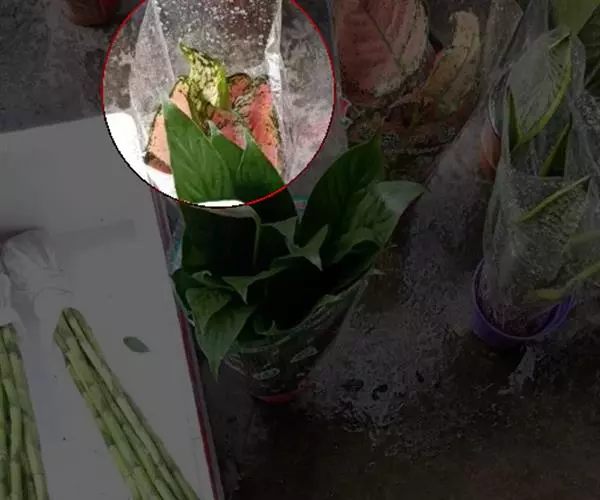圆锥花序顶生或腋生,长5-8厘米,苞片条状披针形;花萼带紫红色且有白粉霜;雄花:花萼长约7毫米,裂片长卵形,近等大,长3-4毫米,宽2.5毫米,内面被毛;雄蕊长6-7毫米,花药顶部被白色短毛;雌花:花萼长约10毫米,裂片长圆状披针形,长约8毫米,宽约3毫米;子房卵形,具6条纵梭,柱头外弯,摺扇状。