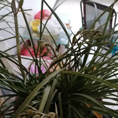 终年都有,高温多雨季节更为猖撅,而以建兰感染尤多。病斑先从叶尖向根茎处延伸,初为褐色,然后逐渐扩大增多,出现许多干黑点,严重时导致整株死亡。防治方法:除积极改菩环境条件外,在发病期内,可先用50%甲基托布津可湿性粉剂800-1500倍液喷治,每7-10天一次;然后再辅以1%等量式波尔多液,每半月一次,连续喷3-5次。