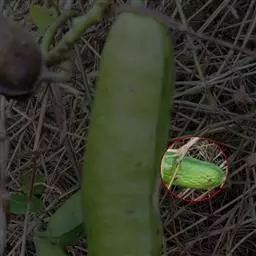 果实圆柱状,直或稍弯,长15-30厘米,直径5-8厘米,表面平滑,通常有深色纵条纹,未熟时肉质,成熟后干燥,里面呈网状纤维,由顶端盖裂。种子多数,黑色,卵形,扁,平滑,边缘狭翼状。花果期夏、秋季。